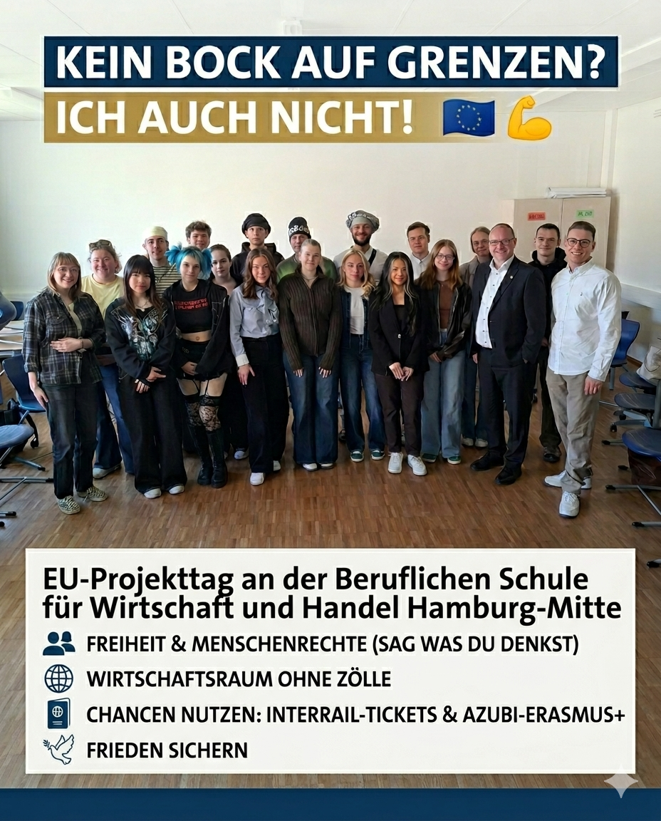 Ich war zum EU-Projekttag an der Julius-Leber-Schule. Als Hamburger Bürgerschaftsabgeordneter und Mitglied im Europarat ist es mir besonders wichtig, die Brücke von unserem Rathaus an der Elbe direkt nach Europa zu schlagen.