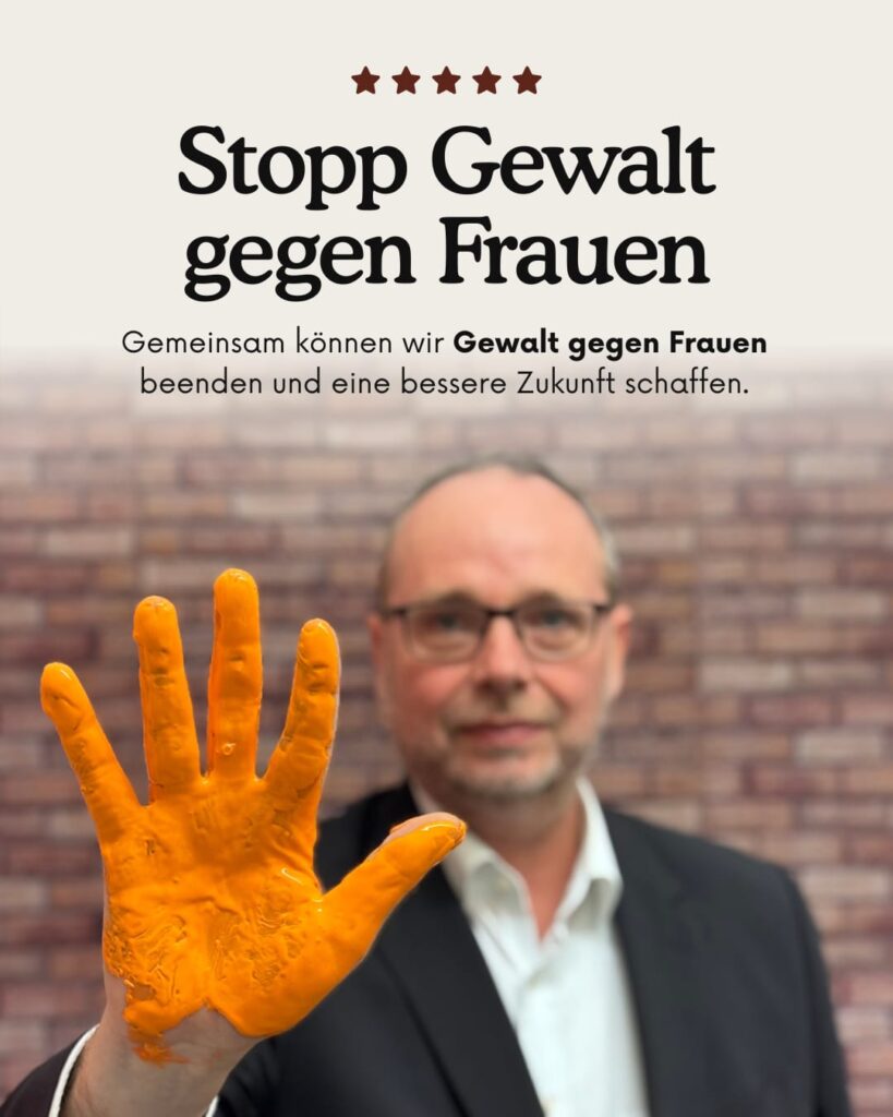 Jede erhobene Hand sollte ein Zeichen des Schutzes und der Solidarität sein – niemals der Gewalt. Heute setzen wir ein sichtbares Zeichen für die UN-Kampagne #OrangeTheWorld und sagen gemeinsam: Nein zu Gewalt an Frauen und Mädchen!